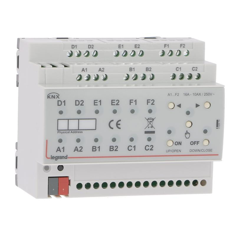 Emballage: 1 - 20 - 200 Marque: LegrandRéférence: 002674EAN: 3414972052320Description: KNX - Actuateur ON/OFF 6 DIN 12 sorties