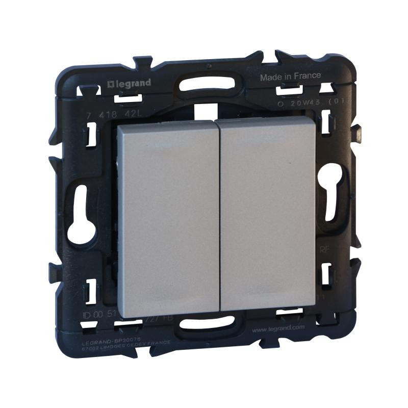 Description: Valena Next with Netatmo double interrupteur émetteur radiofréquence sans fil et sans piles pour éclairage ON/OFF alu