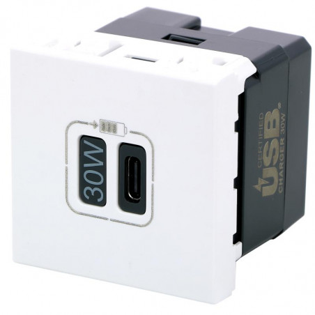 Description: Mosaic chargeur USB 30W power delivery type C - 2 modules - Blanc