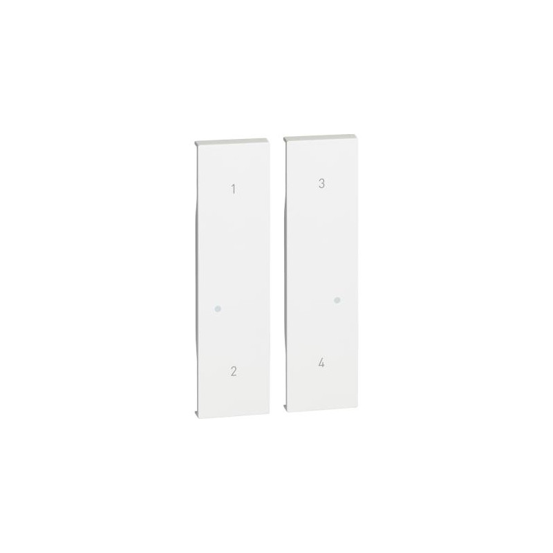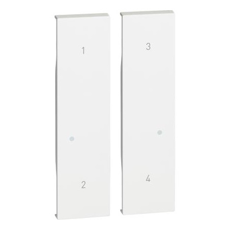 Emballage: 5 - 5 - 100 Marque: BticinoRéférence: KW37M2EAN: 8005543677780Description: Living NOW with Netatmo - Doigt pour commande 4 scénarios - blanc - 2 modules