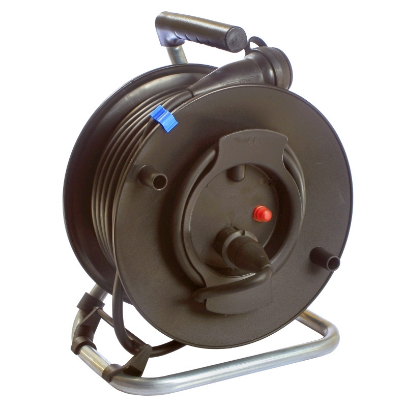 ENROUL. PROLONGATEUR 285MM, 25M H07RN-F3G2,5 NOIR + AVEC SÉCURITÉ THERMIQUE