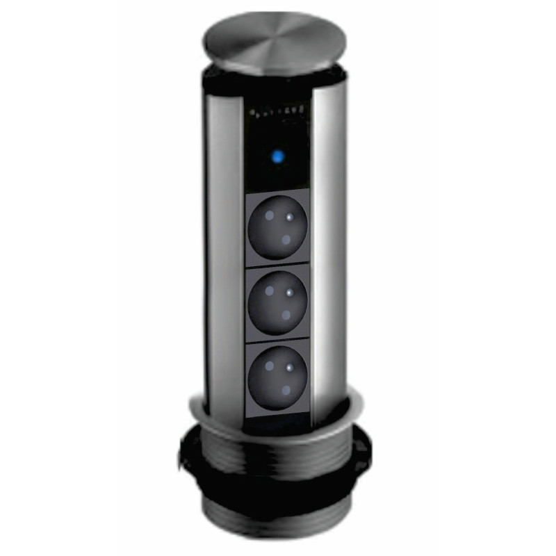 EVOLINE PORT 3X10/16A INOX + 2LED + INTERRUPTEUR ON/OFF