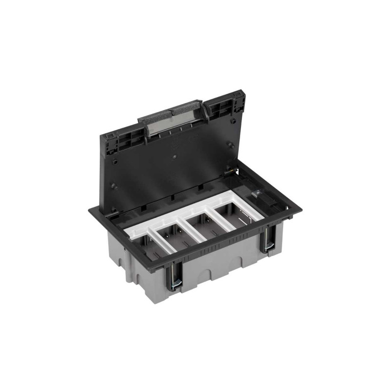 Emballage: 1Référence: KF810/14Marque: SimonRéférence fabricant: KF81014EAN: 8421053125342Description: K45 BOÎTIER DE SOL 8X K45 PROFONDEUR 90MM - GRIS GRAPHITE