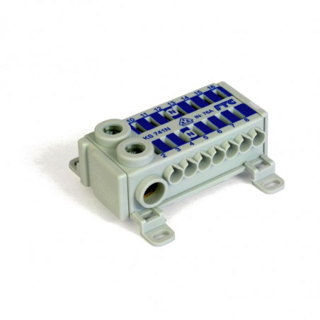 Emballage: 10Référence: KS741NMarque: FTGRéférence fabricant: KS741NEAN: 4018841288217Description: ECB RÉPARTITEUR, 1-PÔLES, (2X 2,5-16MM² + 14X 0,5-4MM²), BLUE