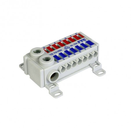 Emballage: 10Référence: KS741NPEMarque: FTGRéférence fabricant: KS741NPEEAN: 4018841288200Description: ECB RÉPARTITEUR, 1-PÔLES, (1X 2,5-16MM² + 7X 0,5-4MM²), BLUE-VERT