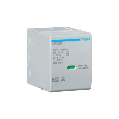Emballage: 1 - 1 - 20 - 960 Marque: HagerRéférence: SPA081EAN: 3250615514820Description: Cartouche 25kA pr SPA80x