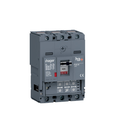 Emballage: 1 - 1 - 9 - 216 Marque: HagerRéférence: HMS040JCEAN: 3250613145705Description: Disjoncteur de tête P160 3P 50kA 40A LSI