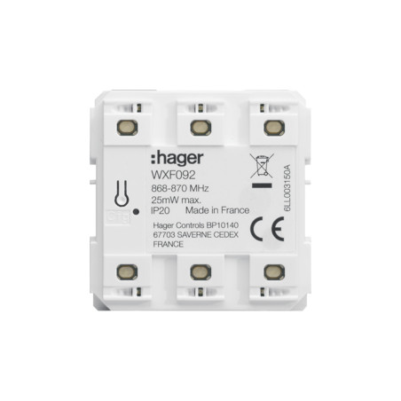 Emballage: 1 - 1 - 108 - 2592 Marque: HagerRéférence: WXF092EAN: 3250618504040Description: Poussoir 2 touches RF