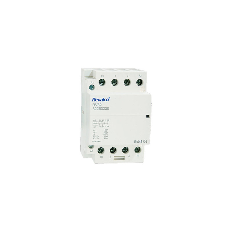 Emballage: 1Référence: RPC63A322Marque: REVALCORéférence fabricant: RV3232263230EAN: 8033032211778Description: CONTACTEUR DE PUISSANCE 63A 4P 3M 2NO+2NF BOBINE 230VAC