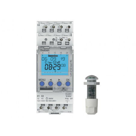 INTERRUPTEUR CRÉPUSCULAIRE AVEC HORLOGE CELL. ENC. 230V 50-60HZ 1-99KLUX 2CO 16A