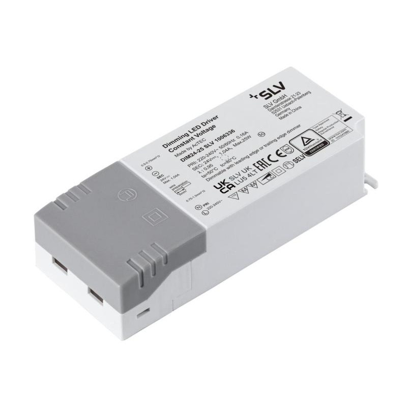 Emballage: 1 - 50 Marque: SLVRéférence: 1006336EAN: 4024163264136Description: Bloc secteur LED 24 V 25 W Phase à intensité réglable