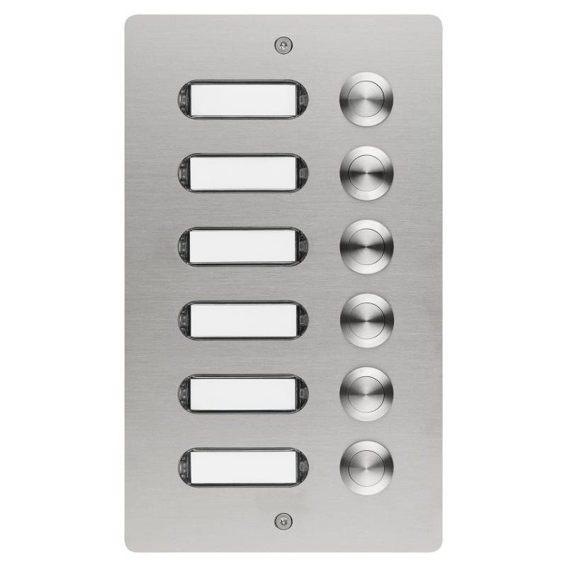 PANNEAU SONNETTE INOX BROSSÉ V2A 6 BOUTONS POUSSOIRS ENCASTRÉS 130X220X45MM