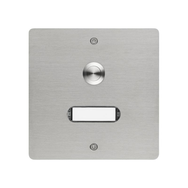 Description: PANNEAU SONNETTE INOX BROSSÉ V2A 1 BOUTON POUSSOIR MONTAGE APPARENT 130X130X45MM