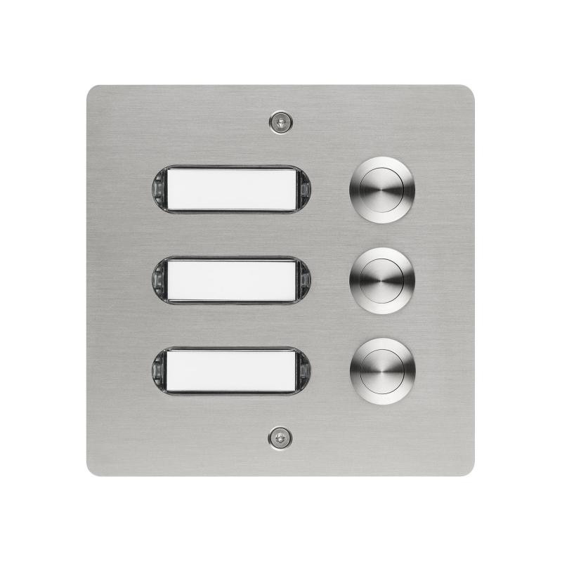 PANNEAU SONNETTE INOX BROSSÉ V2A 3 BOUTONS POUSSOIRS APPARENT 130X130X19MM