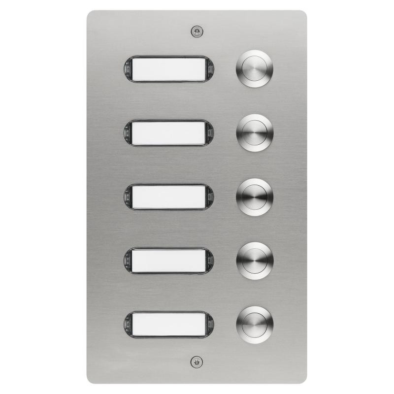 PANNEAU SONNETTE INOX BROSSÉ V2A 5 BOUTONS POUSSOIRS APPARENT 130X220X19MM