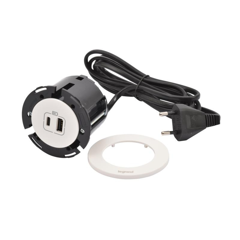 Description: Incara Disq 60 - blanc - équipé d'un chargeur USB A+C 15W et un cordon de 2m avec fiche