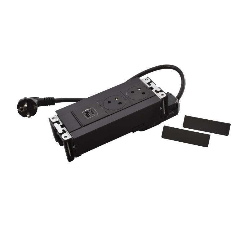 Description: Incara Multilink - noir - 6 modules - avec 2 prises FB 1 chargeur USB A+C 15W et 1 cordon de 2m avec fiche