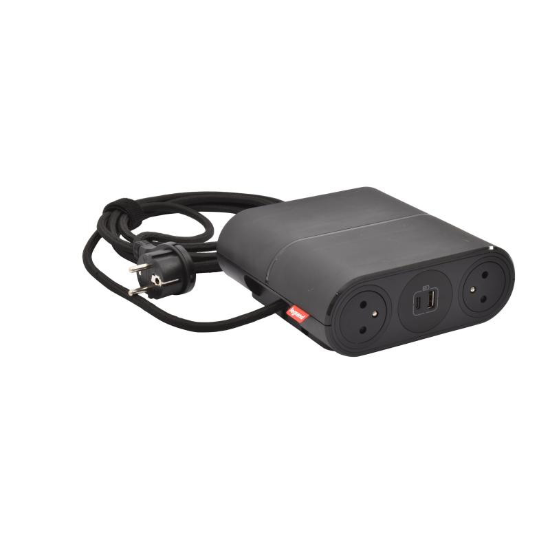Description: Incara Link'On - noir - équipé de 4 prises FB + 2 chargeurs USB A+C 15W et un cordon de 2.5m avec fiche