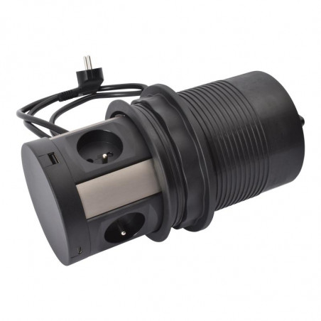 Description: Incara Tower 120 - finition metal noir - équippé de 4 prises FB + 2 chargeurs USB A+C 15W + un chargeur induction et un cordon de 2m avec fiche