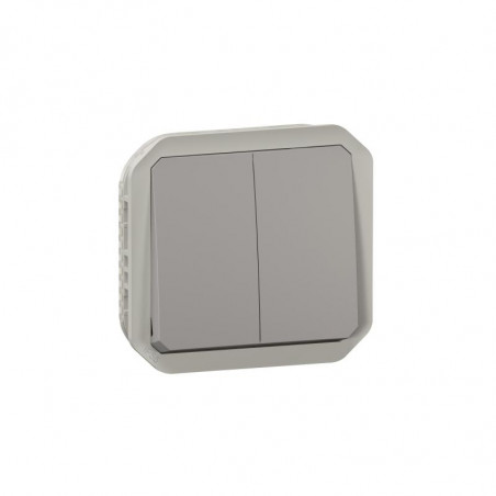 Plexo double inter 2 dir ou poussoir méca IP55 IK08 gris / Non stocké! / Emballage: 10 - 60 - 540
