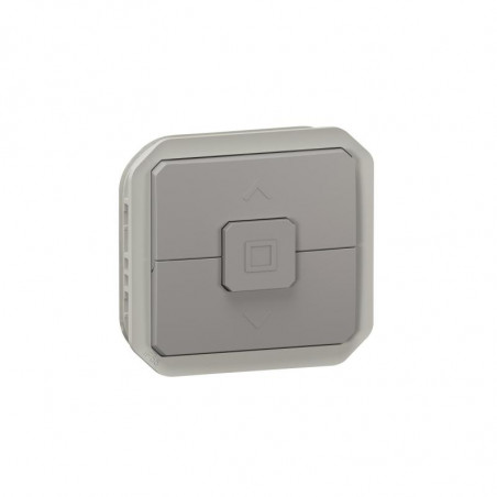 Description: Plexo double interrupteur pour commande de volets roulants - 6AX - 500W - 250V - livré sans boîte de montage en surface ou cadre encastré - IP55 IK06 - gris