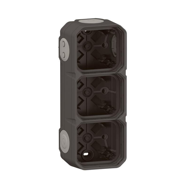 Description: Plexo boîtier à embouts - 3 poste horizontaux ou verticaux - 3 entrées - embouts à membrane - IP55 IK08 - anthracite