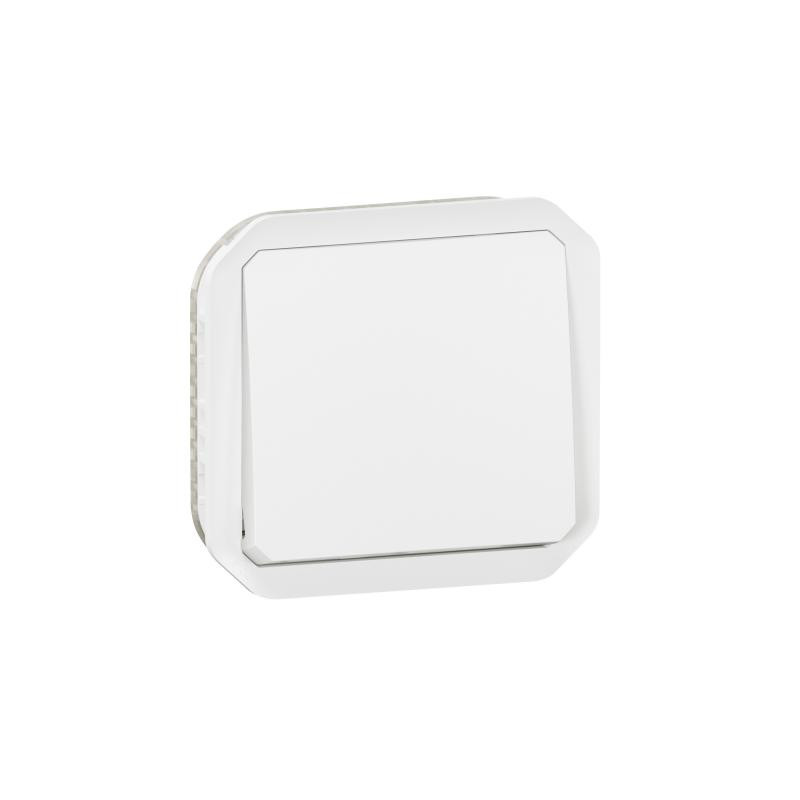 Description: Plexo poussoir NO 10A - 250V - livré sans boîte de montage en surface ou cadre encastré - IP55 IK08 - blanc