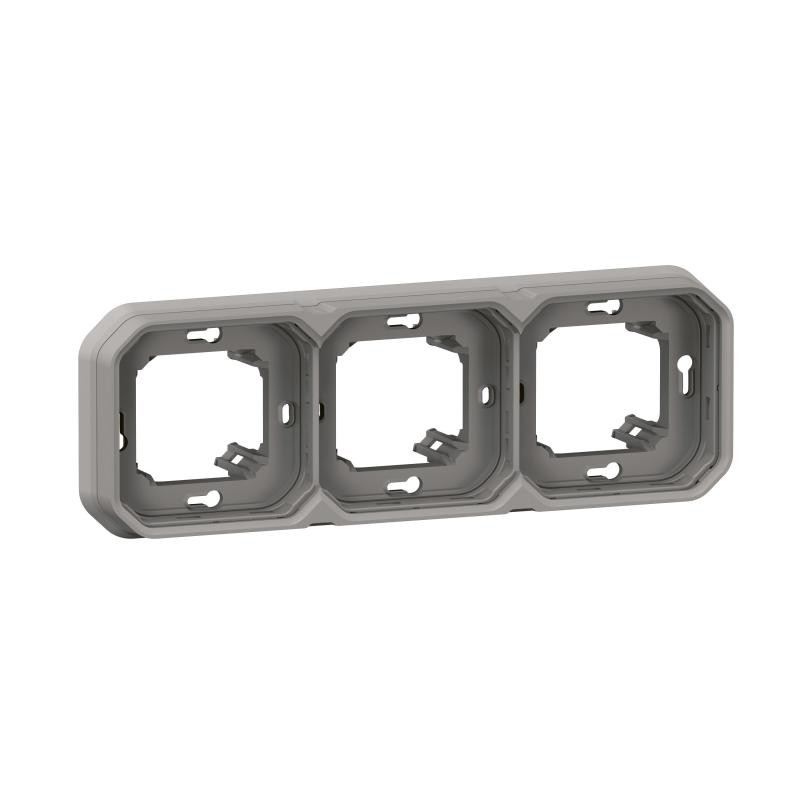 PLEXO support plaques 3 poste horiz. ou vertic. IP55 gris / Non stocké! / Emballage: 5