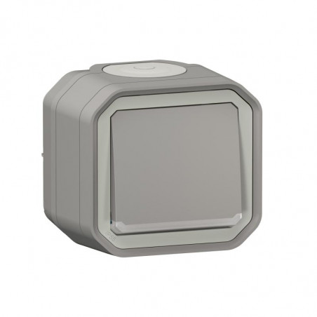 Description: Plexo interrupteur deux directions témoin - 10 AX - 250V - livré complet avec boîte de montage - IP55 IK08 - gris