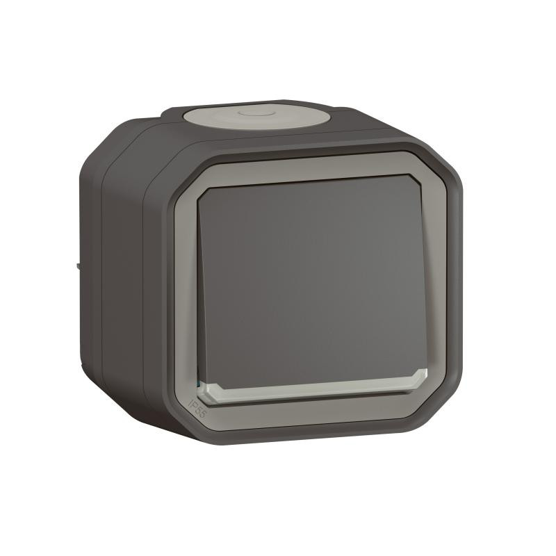 Description: Plexo interrupteur deux directions lumineux - 10 AX - 250V - livré complet avec boîte de montage - IP55 IK08 - anthracite