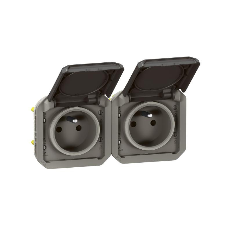 Plexo prise 2x2P+T horizontal mécanisme IP55 IK08 anthracite / Non stocké! / Emballage: 5 - 30 - 1080