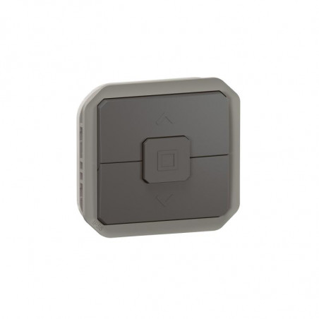 Description: Plexo double interrupteur deux directions pour commande de volets roulants - 6AX - 500W - 250V - livré sans boîte de montage en surface ou cadre encastré - IP55 IK07 anthracite