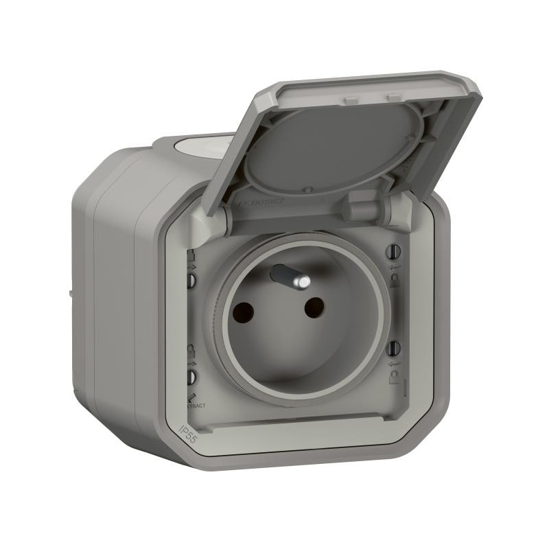 Description: Plexo GP prise de courant à volet - appareil complet avec boîte IP55 - gris