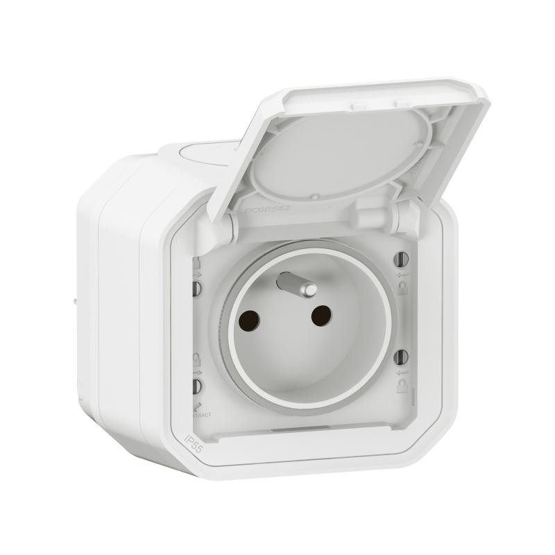 Description: Plexo GP prise de courant à volet - appareil complet avec boîte IP55 - blanc