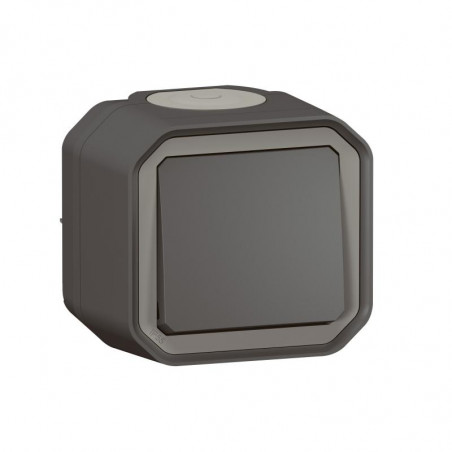 Description: Plexo GP poussoir simple - appareil complet - 10 A - IP55 - anthracite