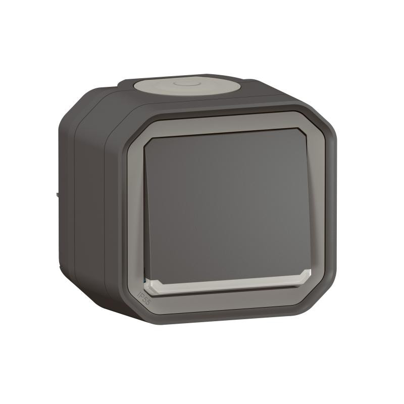 Description: Plexo GP poussoir simple lumineux - appareil complet - 10A - IP55 - anthracite