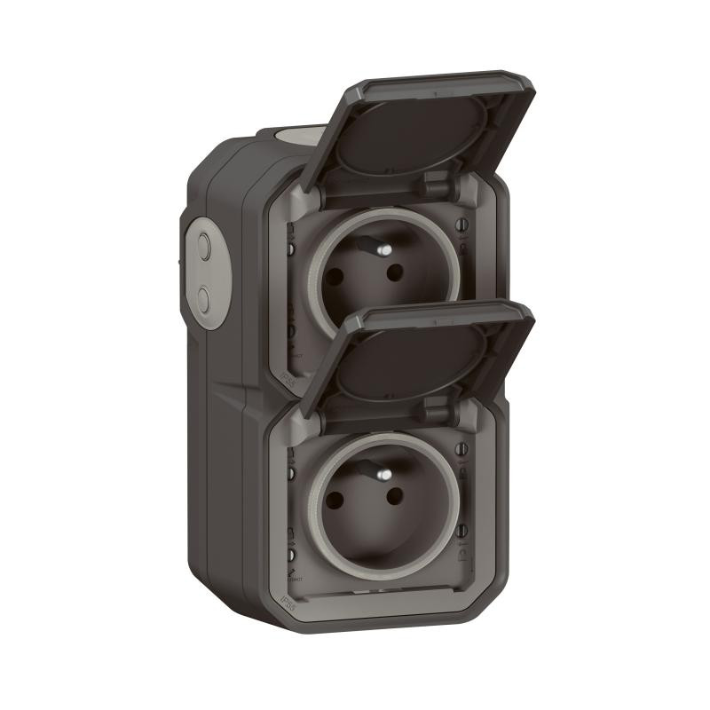 Plexo GP double prise verticale complet IP55 anthra / Non stocké! / Emballage: 5 - 30 - 1080