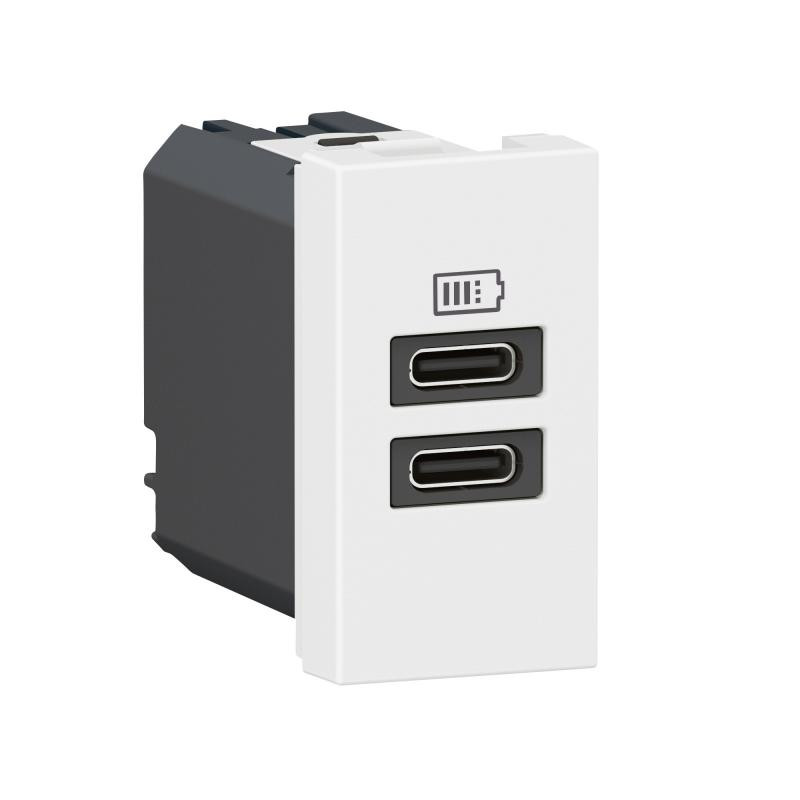 Description: Mosaic double chargeur USB type C+C 3A 15W pour boîte de sol, bloc bureau et goulotte - 1 module blanc