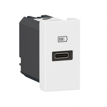 Description: Mosaic chargeur USB type C Power Delivery 3A 15W pour boîte de sol, bloc bureau et goulotte - 1 module blanc