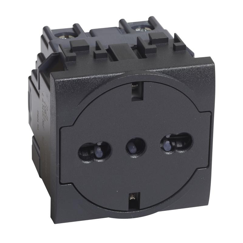 Description: LivingLight prise 2P+T standard Allemand/Italien 16A 250V - 19 et 26mm entraxe - affleurante- anthracite - 2 modules