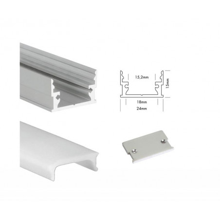 200cm M-Line Low alu + couvercle + embouts / Profil M-Line Low 200 cm alu + couvercle opal + 2 embouts
