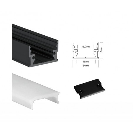 200cm M-Line Low noir + couvercle + embouts / Profil M-Line Low 200 cm noir + couvercle opal + 2 embouts