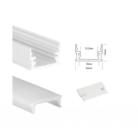 200cm M-Line Low blanc + couvercle + embouts / Profil M-Line Low 200 cm blanc + couvercle opal + 2 embouts
