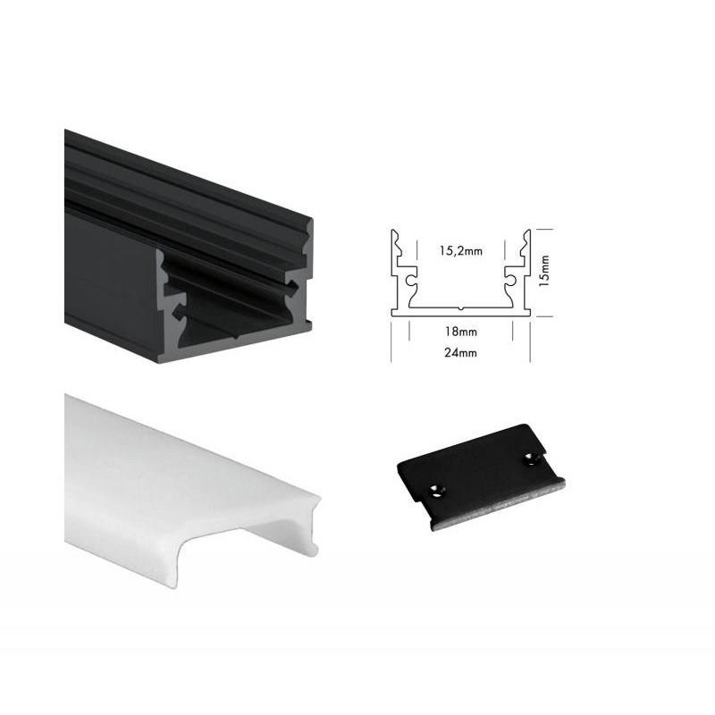 300cm M-Line Low noir + couvercle + embouts / Profil M-Line Low 300 cm noir + couvercle opal + 2 embouts