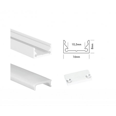 300cm S-Line Low blanc + couvercle + embouts / Profil S-line Low 300 cm blanc + couvercle opal + 2 embouts