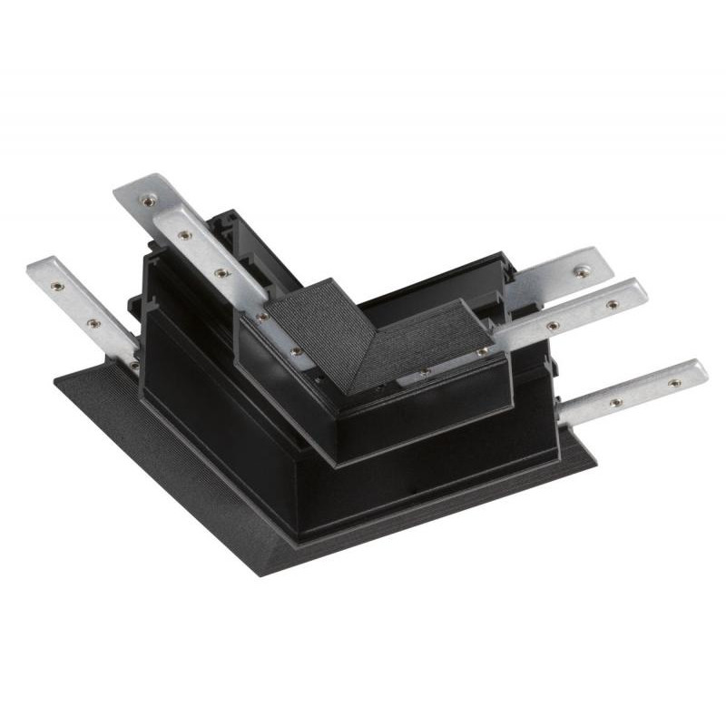 Description: Connecteur en L mécanique, 48 V TRACK, pour rail encastré profond, Stereo, droite, noir