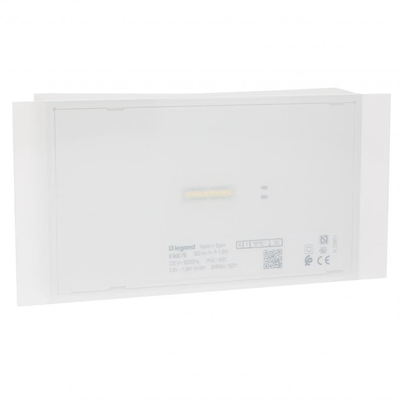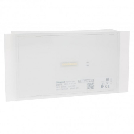Emballage: 1 - 10 - 500 Marque: LegrandRéférence: 660075EAN: 3414972239097Description: X-Light 180 - P/NP-1h-350lm IP42 - standard