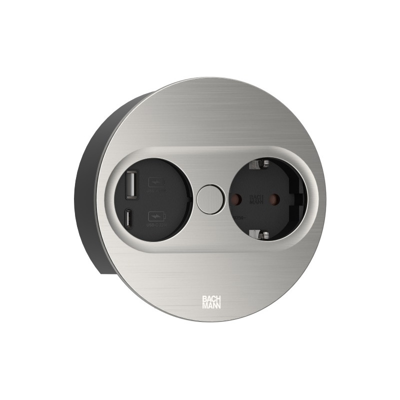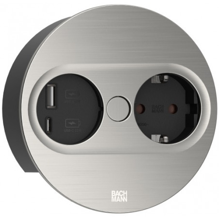 Description: TWIST 2 RONDE (1X SCHUKO + 1X USB CHARGER A/C 22W) LOOK ACIER INOXYDABLE + CÂBLE 2MTR
