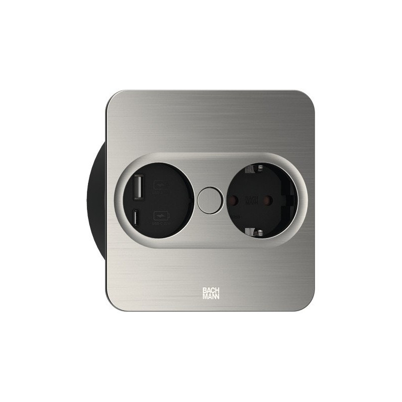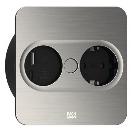 Description: TWIST 2 CARRÉ (1X SCHUKO + 1X USB CHARGER A/C 22W) LOOK ACIER INOXYDABLE + CÂBLE 2MTR