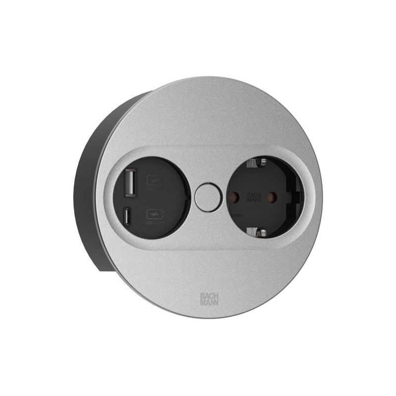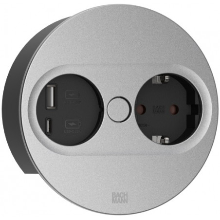 Description: TWIST 2 RONDE (1X SCHUKO + 1X USB CHARGER A/C 22W) ARGENT MAT + CÂBLE 2MTR